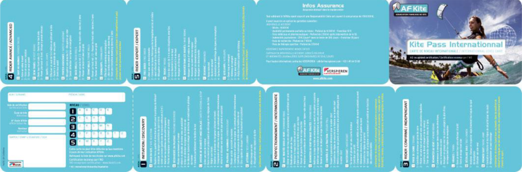 Ce kite pass est une carte de niveaux qui permet au kitesurfeur de se situer dans sa progression. Nous avons souhaitez donner une dimension internationale à ces niveaux de certifications. C’est pourquoi nous avons travaillé avec l’IKO (International Kiteboarding Organization) et trouvé un accord pour que nos niveaux soient en parfaites cohérences. Nos élèves et nos pratiquants pourrons désormais grâce a leur KITEPASS traverser les frontières et avoir un niveau reconnu dans tous les centres IKO et AFKITE autour de la planète.